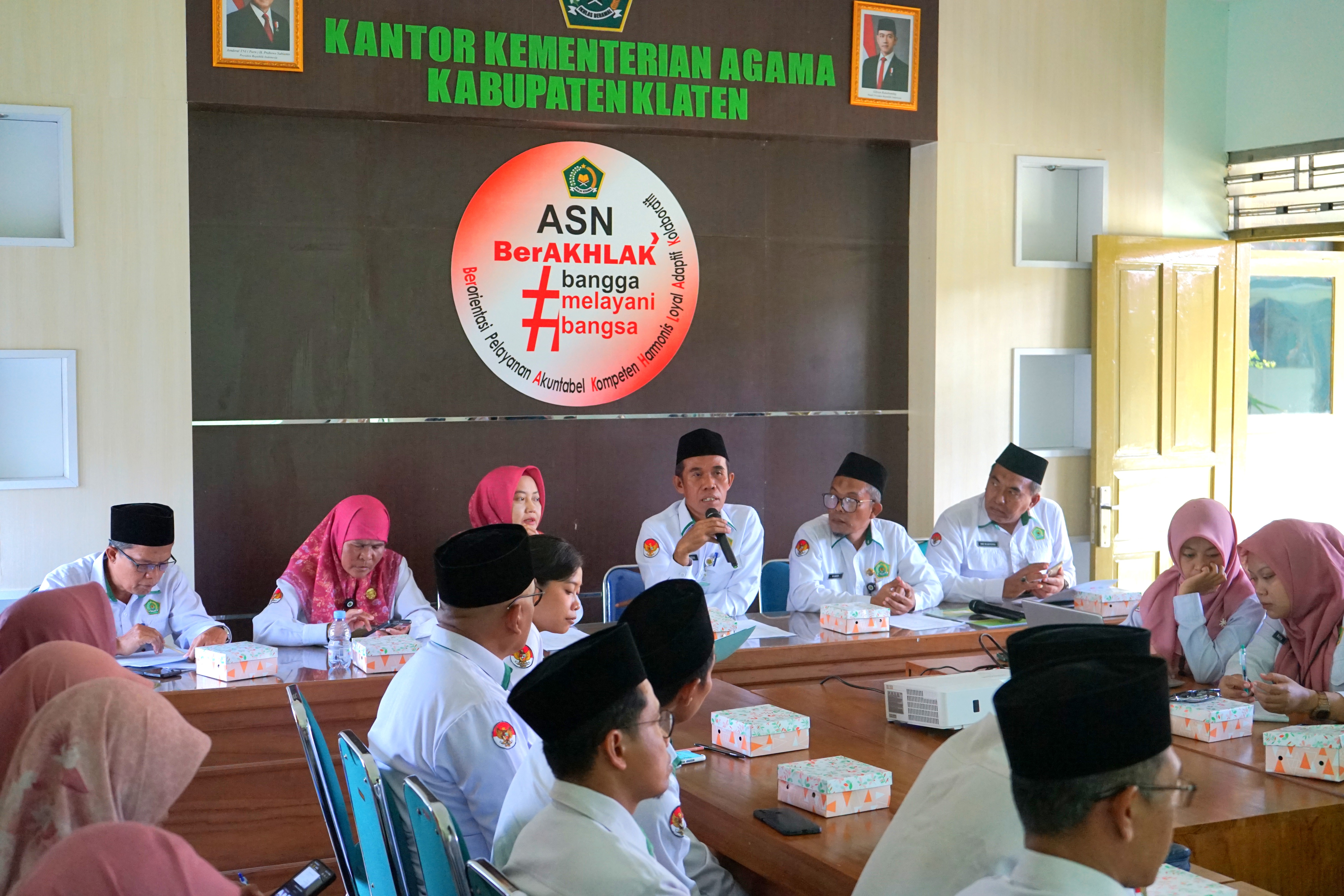 Humas (Klaten) — Kepala Kantor Kemenag Klaten, H. Khumaidin, memimpin langsung rapat koordinasi tata kelola dan anggaran tahun 2026 di Ruang Rapat pada Senin (2/2). Pertemuan strategis ini bertujuan menyelaraskan penggunaan anggaran negara agar selaras dengan kebutuhan masyarakat dan hak-hak aparatur.